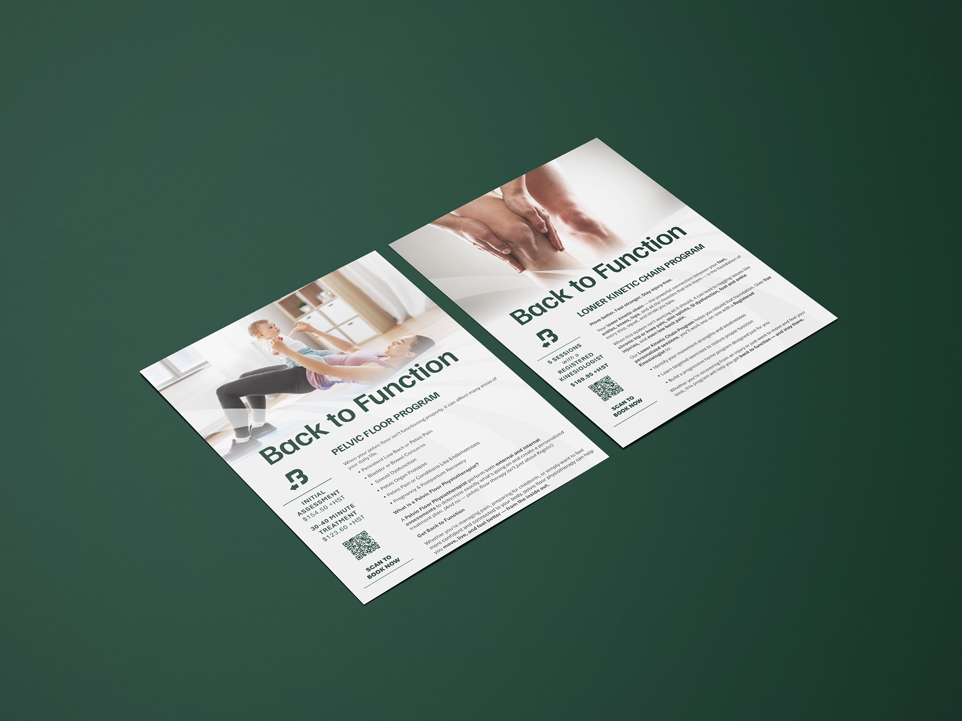 A series of flyers originally designed across 4 different specialties in 2017 - is used as a template. While services have increased and expanded to 6 specialties (2024), the challenge was to include in-depth information about each service while designating a section for program details on cost, contact, location, and how many sessions. Continuing the same look across all flyers makes it easy to refer to specific information.